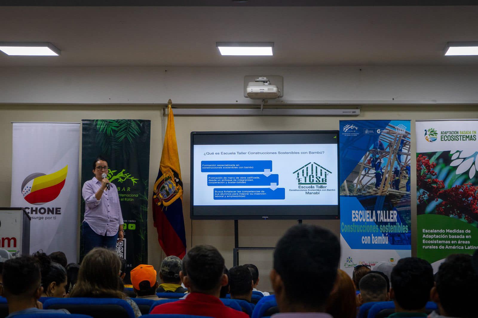 Convertirse en los futuros maestros del bambú es el objetivo de esta escuela taller, impulsada por el Municipio de Chone, en conjunto con la Organización Internacional del Bambú y el Ratán (INBAR LAC), y el programa Escalando Medidas de Adaptación basada en Ecosistemas (EbA LAC).